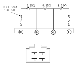 measured resistance is not within specification, the blower resistor must be replaced. (After removing the resistor)