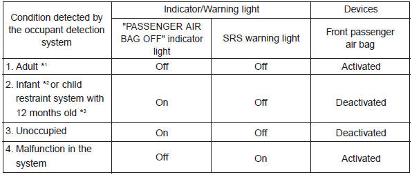 *1) The system judges a person of adult. When a smaller adult sits in the front