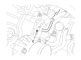 Remove the installation nut (C) from the delivery pipe with the special service tool [SST No.: 09314-3Q100]